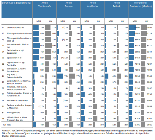 bei den ICT-Spezialisten in der MEM-Branche (Code 25). Umgekehrt gibt es Berufe, bei
